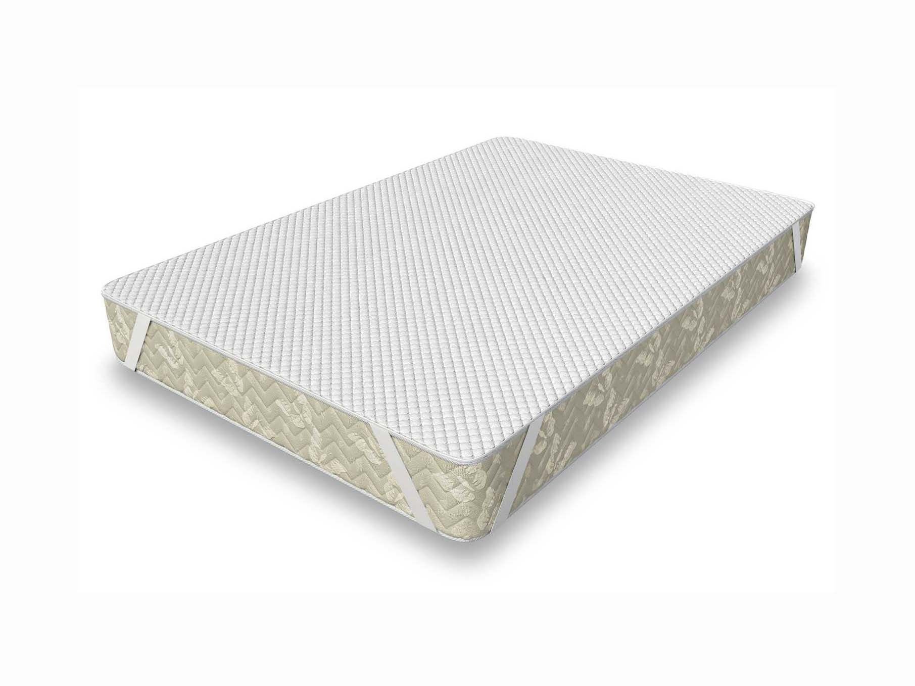 Наматрасник покрывает всю спальную поверхность матраса. По углам модели вшиты специальные резинки для крепления. Благодаря им изделие надёжно фиксируется на спальной принадлежности.