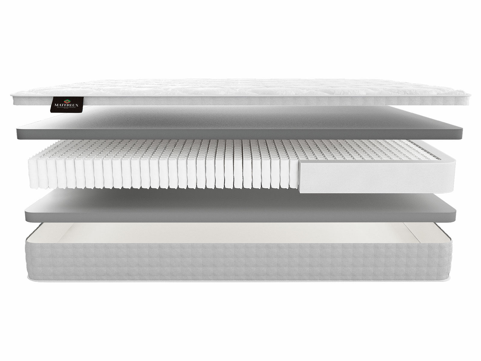 Пружинный блок "Мультипакет" (1040 независимых пружин на спальное место, высота-13 см; толщина проволоки-1,3 мм; диаметр пружин-4,3 см): пружины из закаленной легированной стали, индивидуально упакованные в "кармашки" из файбертекса, обеспечивают точечную поддержку тела, повторяя его контуры. Такая система прекрасно выдерживает значительные нагрузки и гарантирует комфортный и здоровый сон.