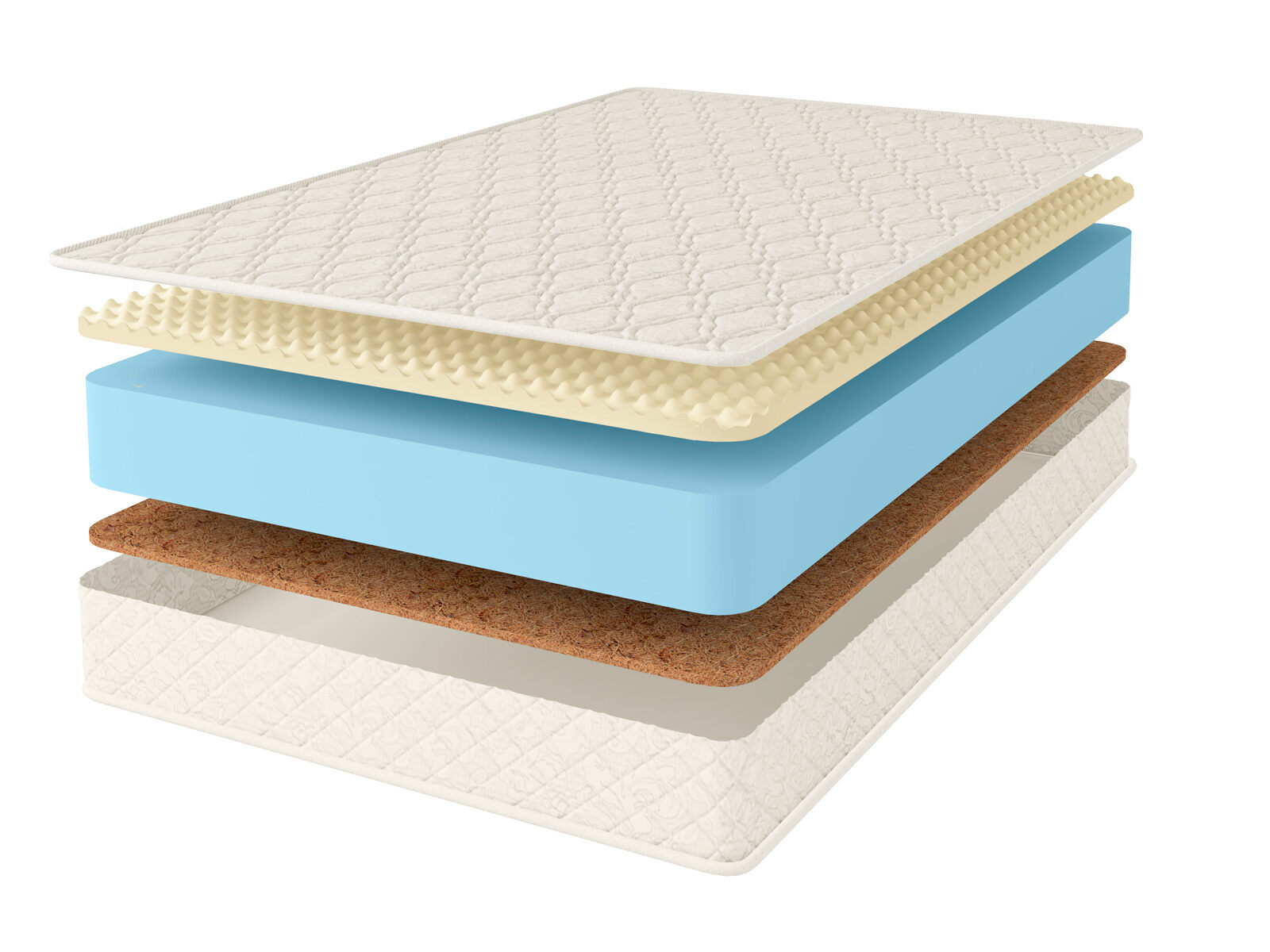 Чехол матраса из хлопкового жаккарда, который обладает высокой износостойкостью, простеган на Холлконе и имеет очень длительный срок службы. Ткань чехла может немного отличаться по рисунку, а также по оттенку цвета, это не влияет на ее свойства и качество.