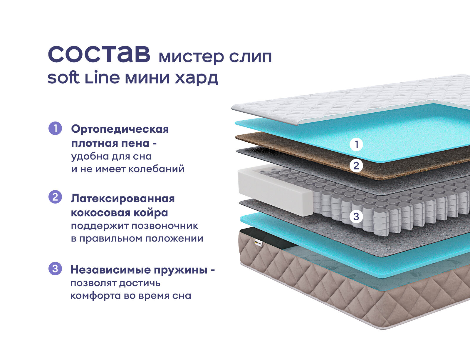 Прочный и комфортный матрас с ортопедической поддержкой. Это оптимальный выбор для тех, кто ищет удобную жёсткость и надёжную поддержку для спины. Две спальные поверхности и разный уровень жёсткости позволяет выбрать уровень комфорта. В сочетании с качественными наполнителями и усиленным пружинным блоком вы получите здоровый сон и уютный отдых.