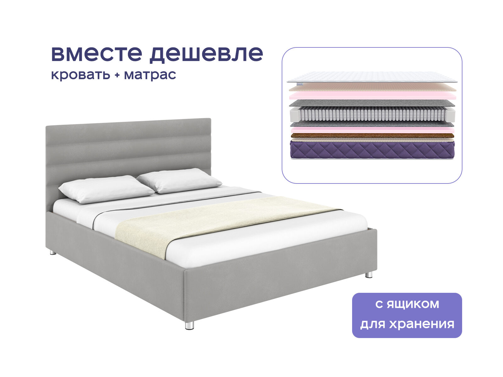 Комплект Левита с подъемным механизмом + Базилик Энерджи 24 Медиум — элегантный альянс французского шарма и ортопедического комфорта. Кровать с уютным изголовьем и матрас средней жесткости создают пространство, где каждая деталь продумана для вашего отдыха: от тактильного удовольствия до поддержки спины. Покупая комплект, вы получаете не просто мебель, а готовое решение для сна, сочетающее экономию до 36% от стоимости, стиль и заботу о здоровье.