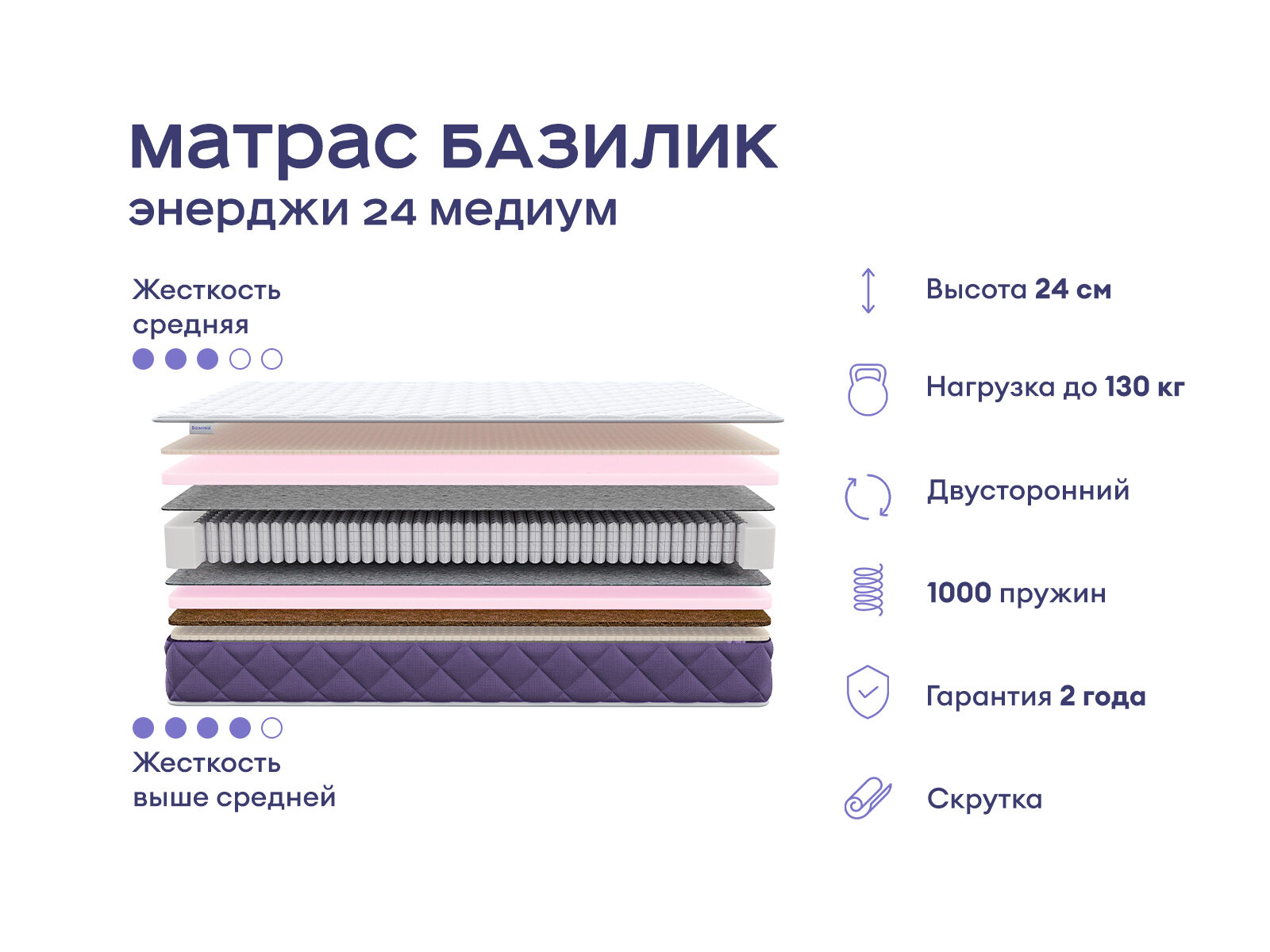 Эргономичный матрас с ортопедическим эффектом и французским шармом. Это модель средней жёсткости с двумя спальными поверхностями, которая сочетает в себе комфорт и поддержку для правильного положения позвоночника. Многослойное наполнение и независимый пружинный блок гарантируют здоровый и восстанавливающий сон.