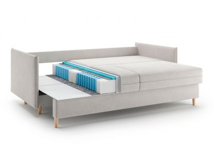 Диван-кровать Rest для сна в современном стиле, с механизмом трансформации аккордеон и коробом для хранения. Металлический каркас с деревянными ламелями обеспечивает ровную поверхность, как на кровати. Матрас анатомический с независимым пружинным блоком. Благодаря чехлу с объемной стежкой в форме квадратов, диван органично впишется в современные интерьеры и интерьеры в стиле минимализм. Лаконичные подлокотники и механизм разложения обеспечивают дивану минимальные габариты в ширину как в сложенном, так и разложенном виде. Диван Rest оборудован вместительным коробом для хранения постельного белья или аксессуаров для сна. Rest имеет 2 положения трансформации - диван с комфортной посадкой и кровать с полноценным анатомическим матрасом.