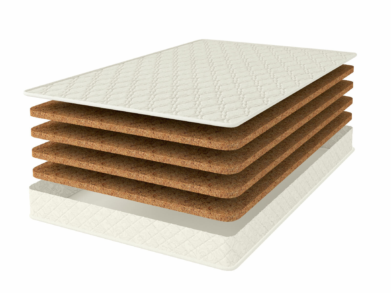Койра – это материал с природными составляющими в основе. Она состоит из кокосового волокна, которое плотно прессуют, а затем дополнительно скрепляют латексным составом. Так кокос приобретает не только жёсткость, но и гибкость, которая позволяет ему подстраиваться под формы фигуры человека. Вот почему этот материал обладает ортопедическим эффектом и, несмотря на твёрдость, великолепно повторяет изгибы тела.