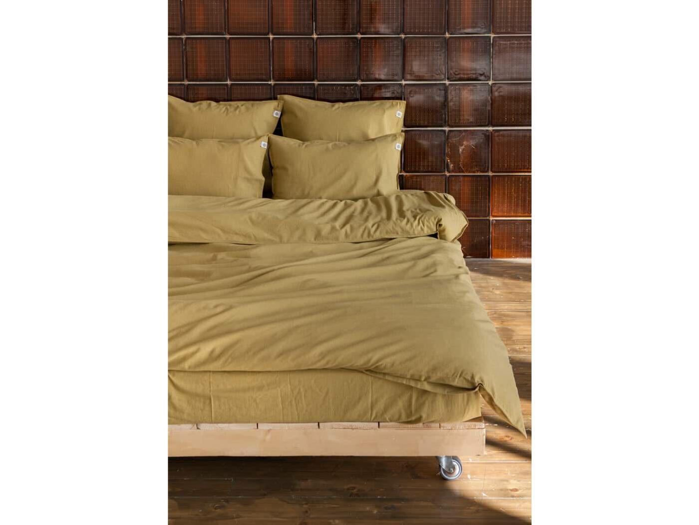 Лэйбл с информацией по уходу и стирке тоже является частью дизайна, так как нарочито видимо пришит на простыни, пододеяльники и наволочки.