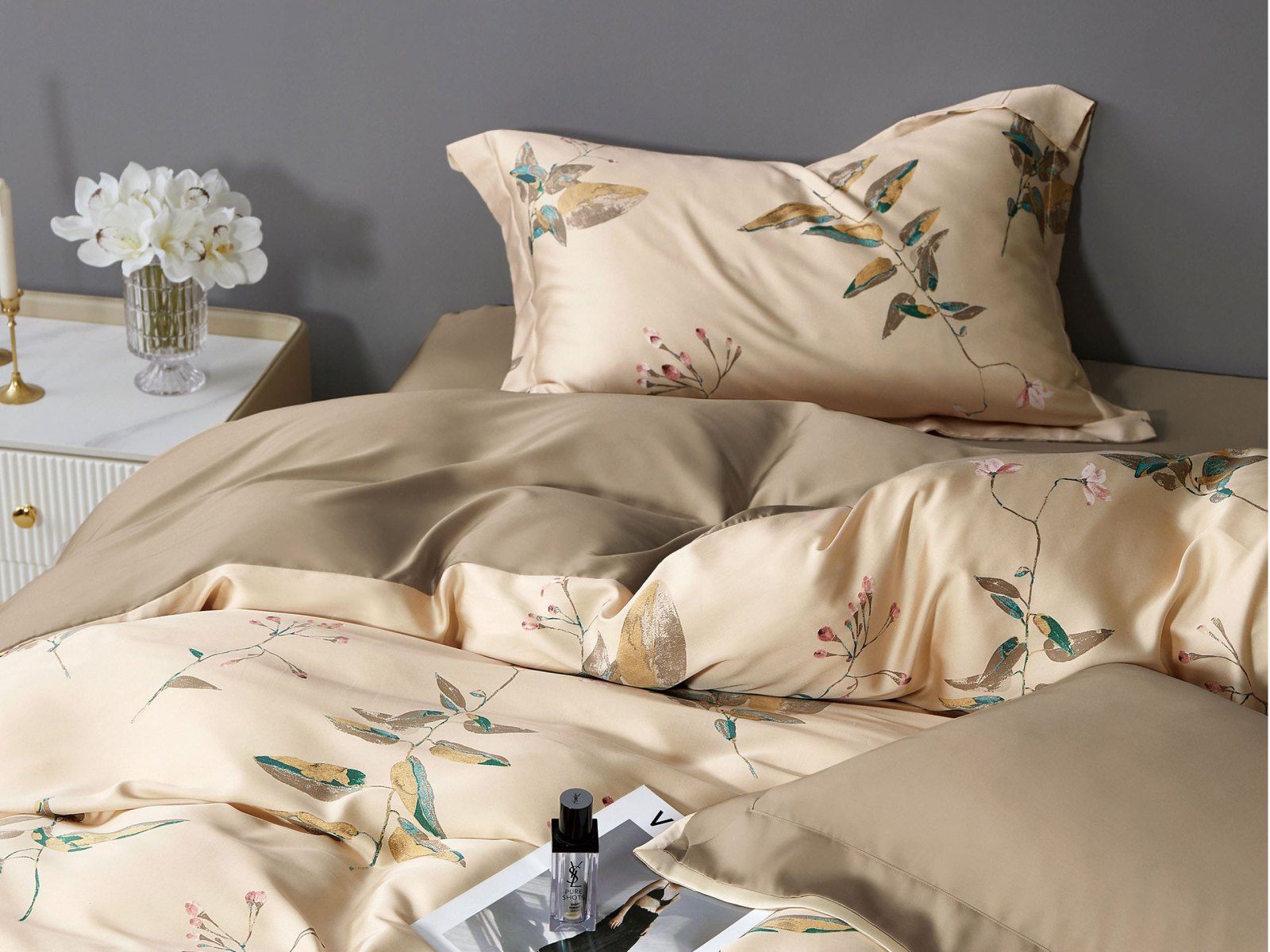 Теплая сливочная тональность дизайна Libreta создает особую атмосферу уюта и спокойствия в спальне. Нейтральный растительный дизайн органично впишется в интерьер современной и классической спальни.
