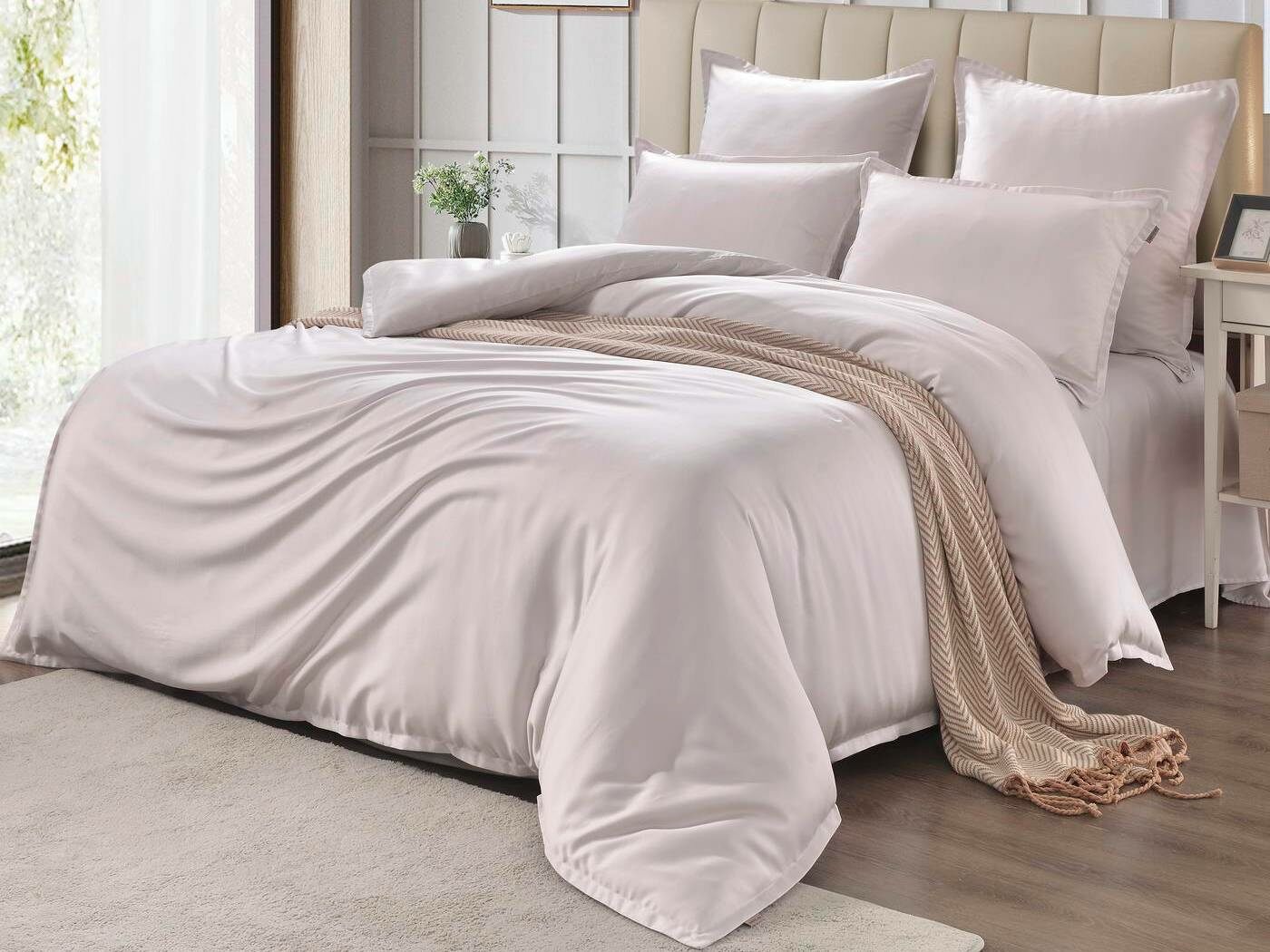 Комплекты постельного белья Ансель: нежность и комфорт каждую ночь Ищете постельное бельё, которое подарит вам незабываемый комфорт и уют? Тогда комплекты постельного белья Ансель из тенселя — идеальный выбор! Тенсель — это натуральная ткань, изготовленная из волокон эвкалипта. Она обладает рядом преимуществ перед хлопковыми тканями: более нежная, шелковистая и приятная на ощупь. Комплекты постельного белья Ансель включают в себя наволочки, простыню и пододеяльник. Они выполнены из 100% тенселя, что гарантирует высокое качество и долговечность. Одно из главных преимуществ тенселя — его способность пропускать воздух и хорошо впитывать и испарять влагу. Это обеспечивает оптимальный микроклимат во время сна, предотвращает появление неприятных запахов и бактерий. Ещё одно важное свойство тенселя — антибактериальный эффект. Это значит, что постельное бельё Ансель не вызывает аллергии и подходит для людей с чувствительной кожей. Уникальное свойство тенселя — климат-контроль. При высокой температуре в помещении ткань обладает лёгким и приятным охлаждающим эффектом, а при низкой создаёт ощущение тепла и комфорта. Комплекты постельного белья Ансель — это идеальный выбор для тех, кто ценит комфорт, качество и натуральность. Они станут отличным дополнением к вашему интерьеру и подарят вам незабываемые ощущения во время сна.