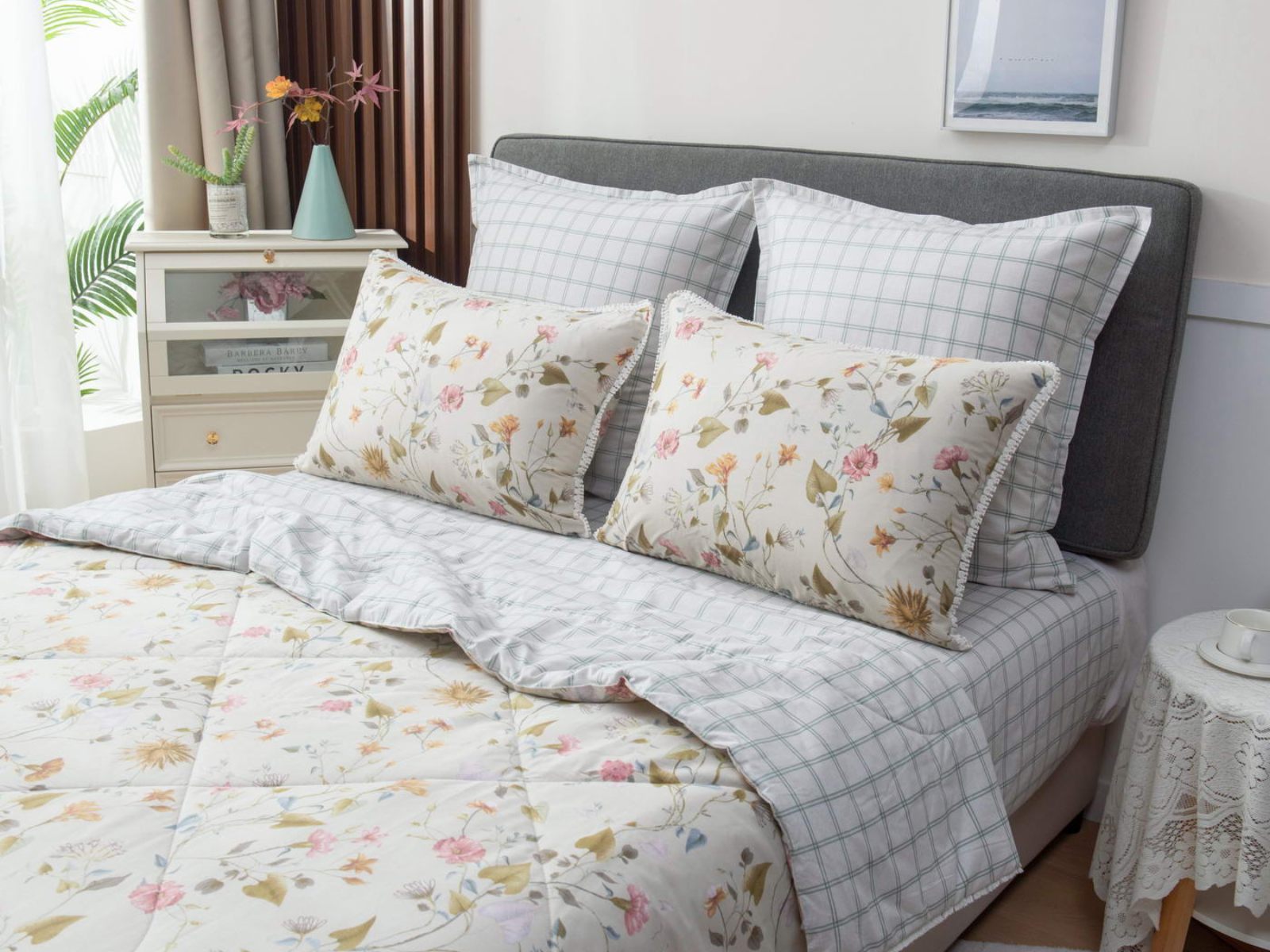 В комплекты комфортеров с одеялом Бернадетт входят наволочки, простыня и легкое всесезонное одеяло. Оцените это современное и очень удобное решение, которое идеально подходит тем, кто не любит возиться с пододеяльниками.
