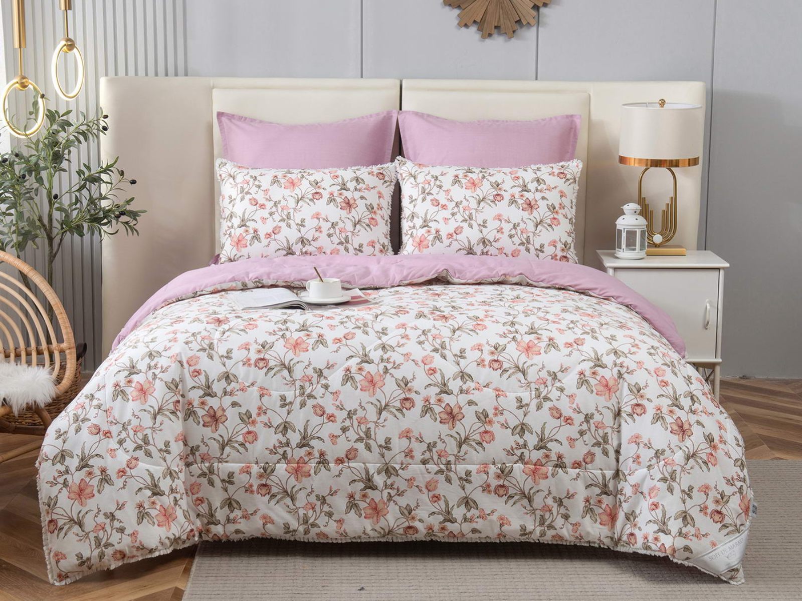 В комплекты комфортеров с одеялом Бернадетт входят наволочки, простыня и легкое всесезонное одеяло. Оцените это современное и очень удобное решение, которое идеально подходит тем, кто не любит возиться с пододеяльниками.
