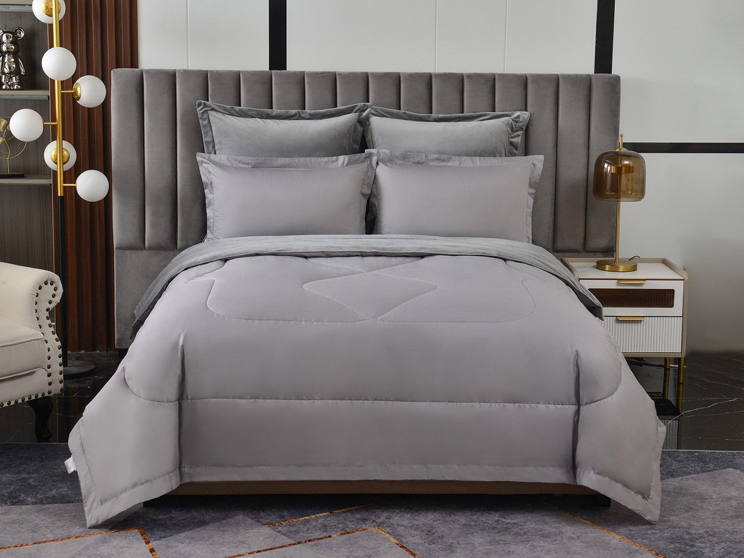Изготовленный из качественной вискозы и мягкого хлопка трендовых цветов, комплект создаёт приятное ощущение на коже. Его экологичное наполнение из 100% эковолокна обеспечивает гипоаллергенные свойства, подарив вам спокойные и уютные ночи.
