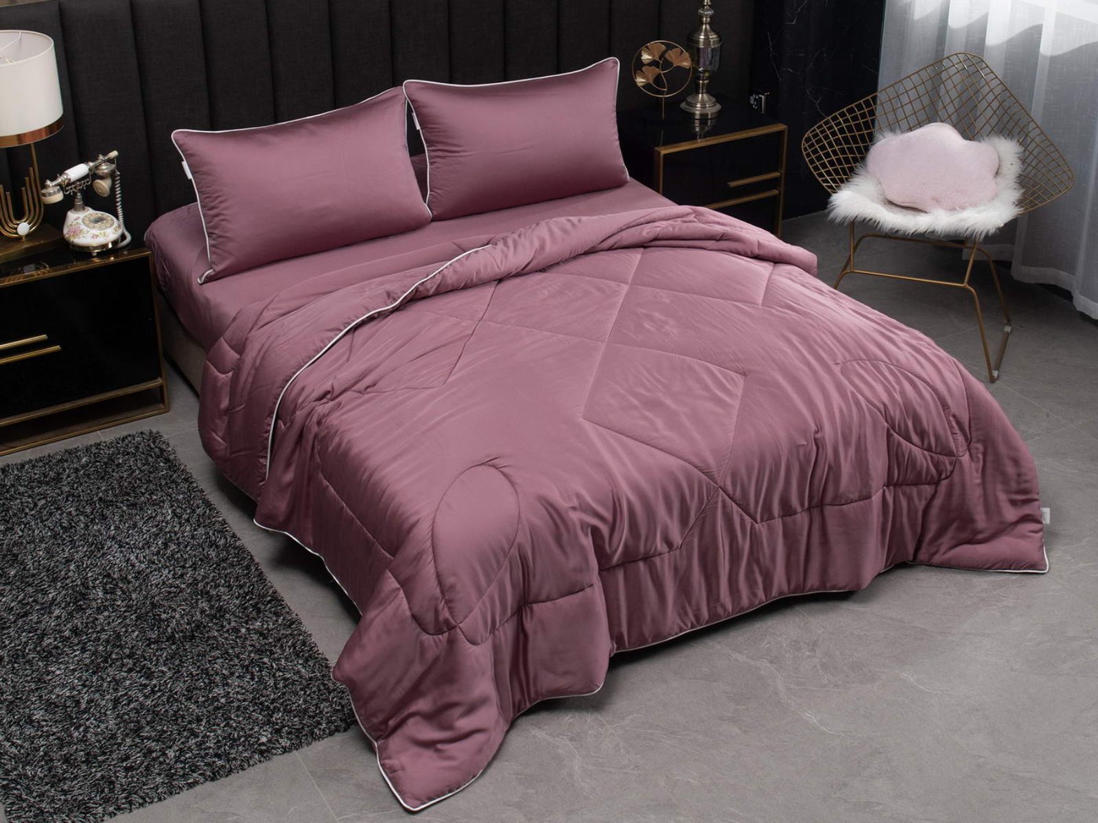 Палитра однотонных комплектов с одеялом Рафаэль – это десять актуальных оттенков. Комплект постельного белья оформлен контрастным кантом на одеяле и наволочках, застегивается на молнию. Одеяло декорировано красивой строчкой, что добавляет изысканности. Комфортеры станут настоящим украшением вашей спальни.