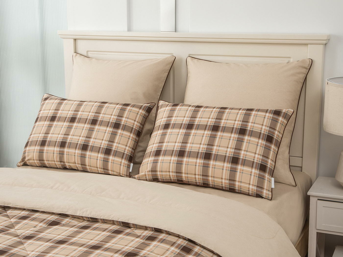 Особенность: двусторонняя модель, наволочки и одеяла декорированы кантом.