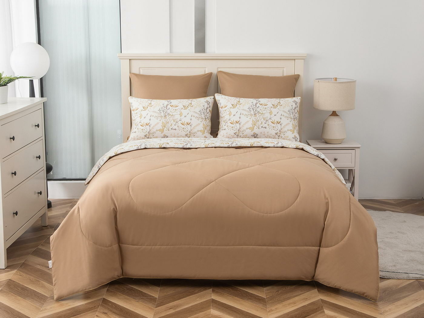 Особенность: двусторонняя модель, наволочки и одеяла декорированы кантом.