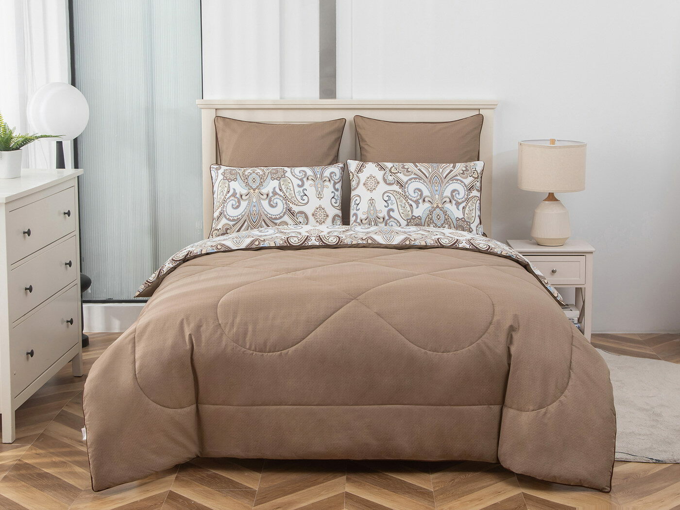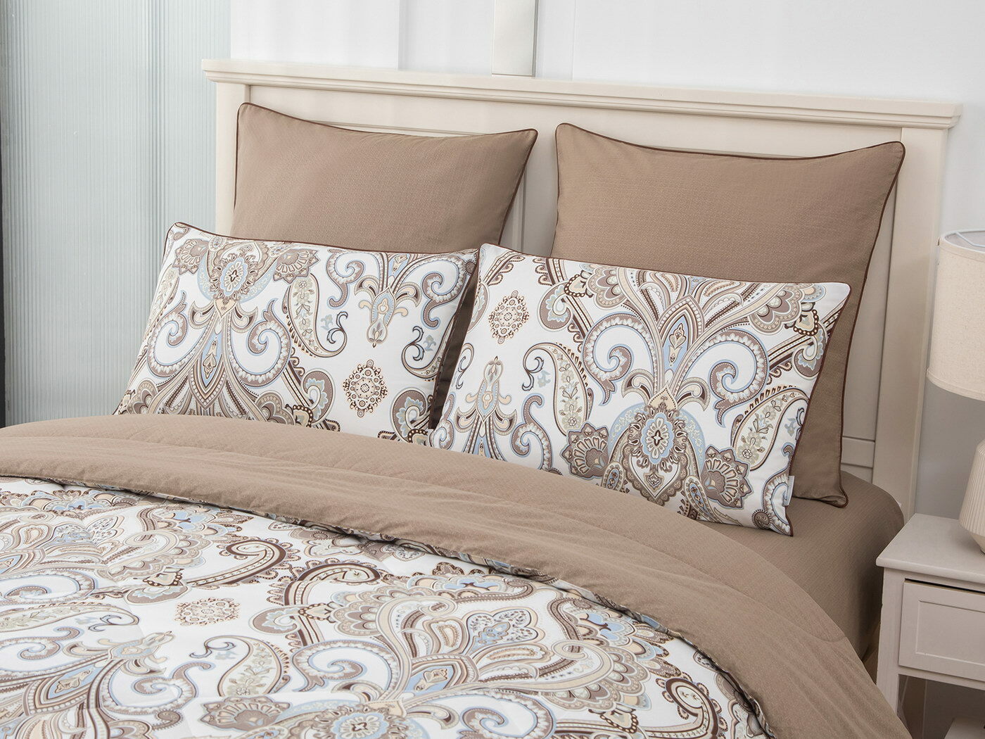 Особенность: двусторонняя модель, наволочки и одеяла декорированы кантом.