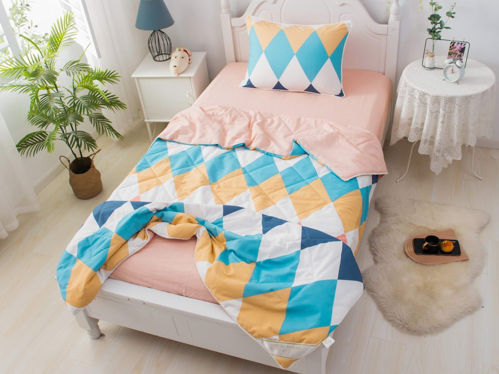 Само одеяло тонкое и легкое, но под ним ребенку не будет холодно зимой или жарко летом. Такое одеяло можно использовать в любое время года, 100% хлопок гарантирует качественный сон, т.к. натуральная ткань хорошо впитывает влагу и позволяет коже дышать. Натуральные материалы не вызывают аллергии. Огромная палитра оттенков и яркие дизайны комплектов понравятся детям и подросткам.