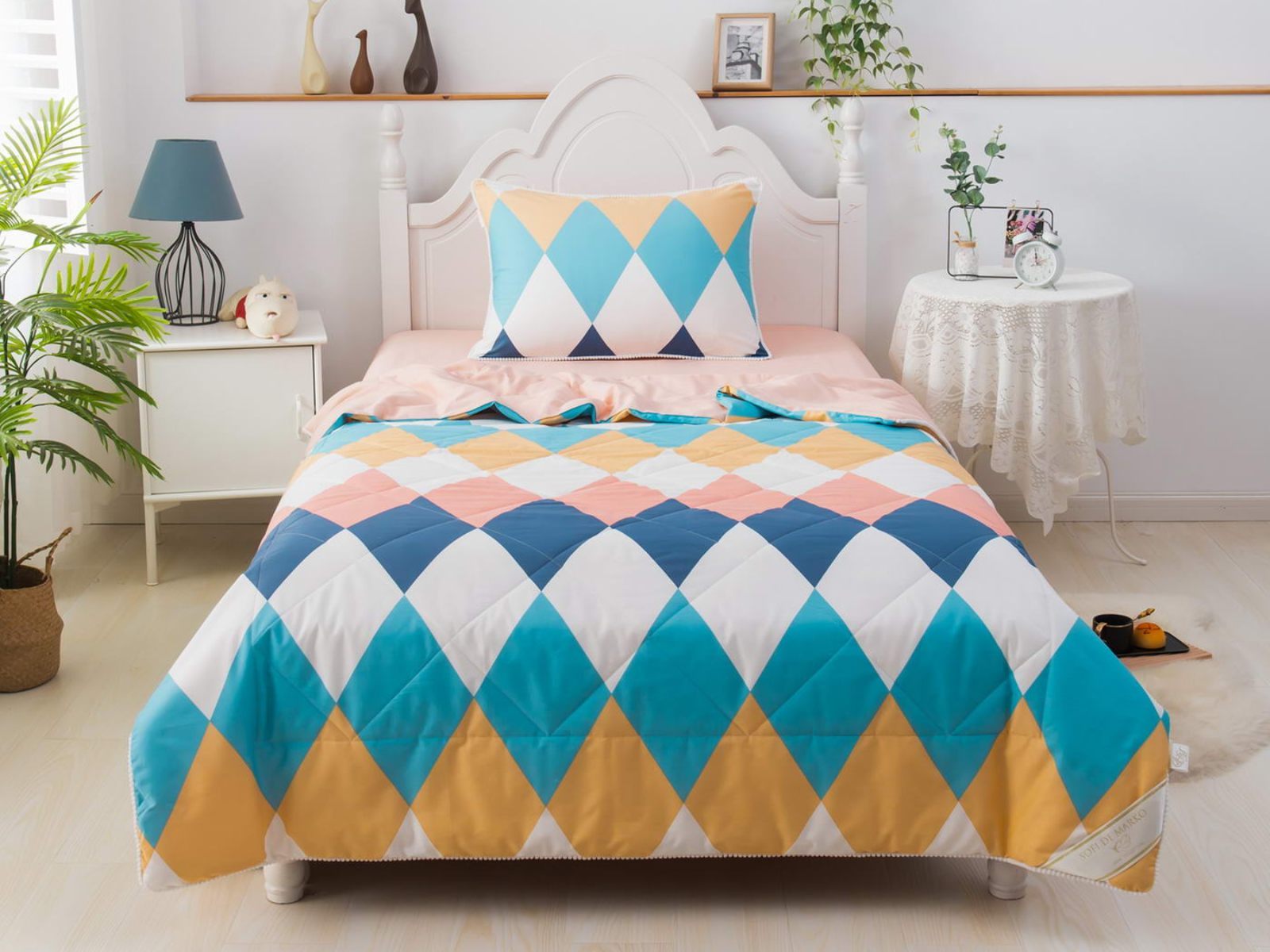 Интернет-магазин СОН.РУ предлагает купить постельное белье с доставкой по Реутову . Комплект постельного белья Софи де Марко Ромбики (цветной) с одеялом 1,5-спальный размера 1,5-спальный стоит 15 120 ₽ . На товар действует скидка в размере %. Если у вас есть вопросы по гарантии, доставке и оплате, задавайте их менеджерам нашего кол-центра по телефону: 8 495 545-47-33 .
