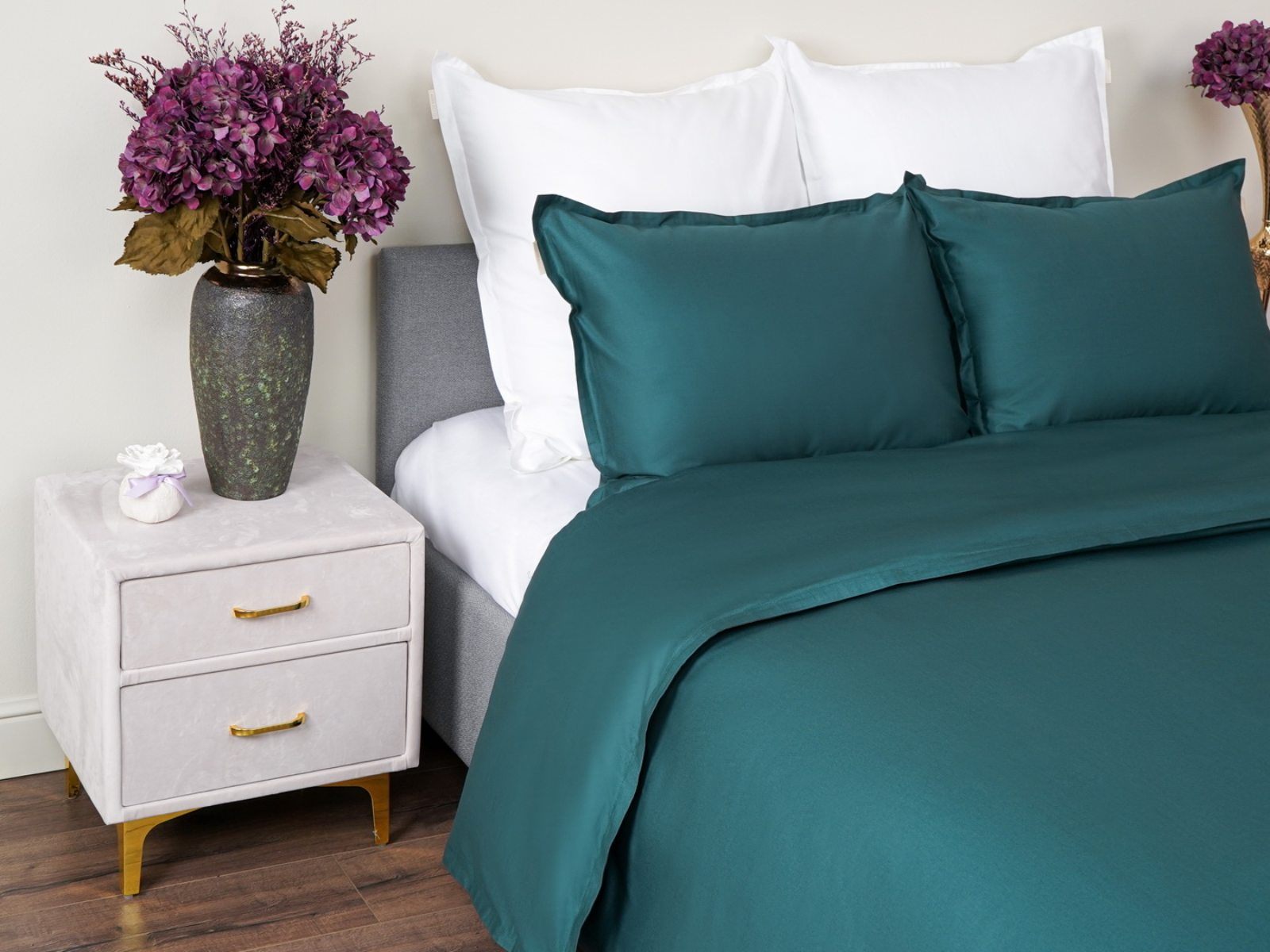 Особенность: наволочки и пододеяльник с ушками 2 см по периметру, пододеяльник на пуговицах;