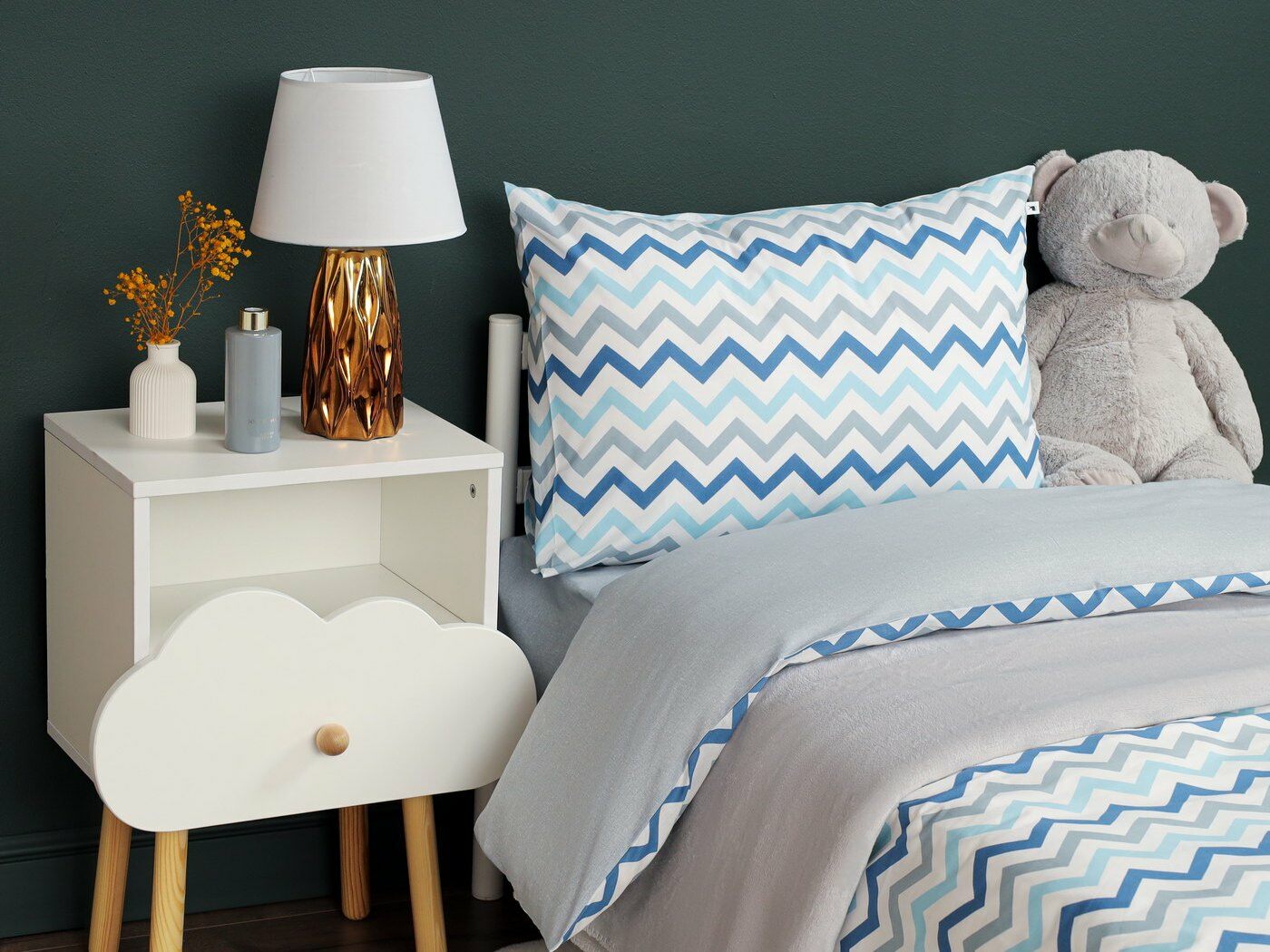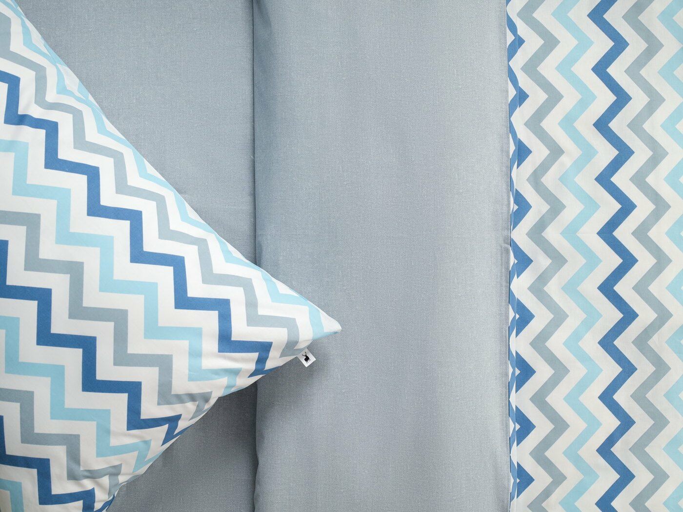 Пододеяльник –двусторонний: верх из ткани А (принтованная ткань), обратка из ткани В (однотонная рогожка), с потайной молнией.