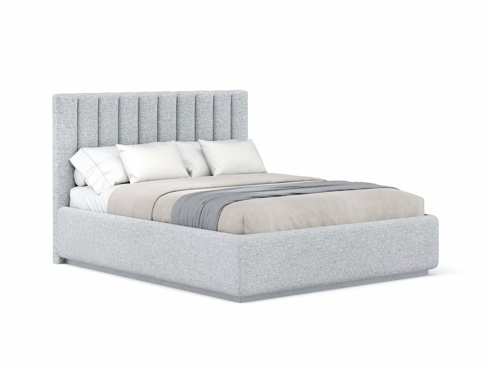 Кровать с мягким изголовьем, выполненным в виде 10 вертикальных панелей (вертикальная утяжка, всегда 10 шт независимо от размера спального места, с увеличением размера спального места увеличивается ширина панели), отличный вариант для спален с низкими потолками: вертикальный полосы на изголовье визуально вытягивают пространство.
