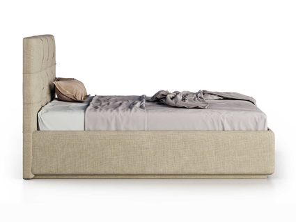 Кровать укомплектована IQ с подъемным механизмом и ящиком для белья без дна (дополнительная платная опция - дно к ящику IQ из HDF (ХДФ). Каркас кровати на цоколе, декоративный чехол на цоколе съёмный. Глубина ящика для белья - 30 см, без ограничения нагрузки на ящик.