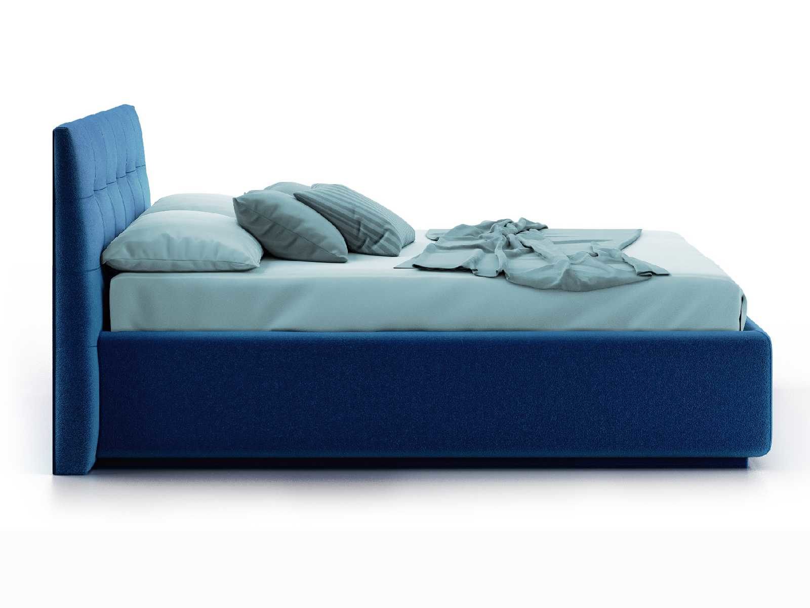Кровать укомплектована IQ с подъемным механизмом и ящиком для белья без дна (дополнительная платная опция - дно к ящику IQ из HDF (ХДФ). Каркас кровати на цоколе, декоративный чехол на цоколе съёмный. Глубина ящика для белья - 30 см, без ограничения нагрузки на ящик.