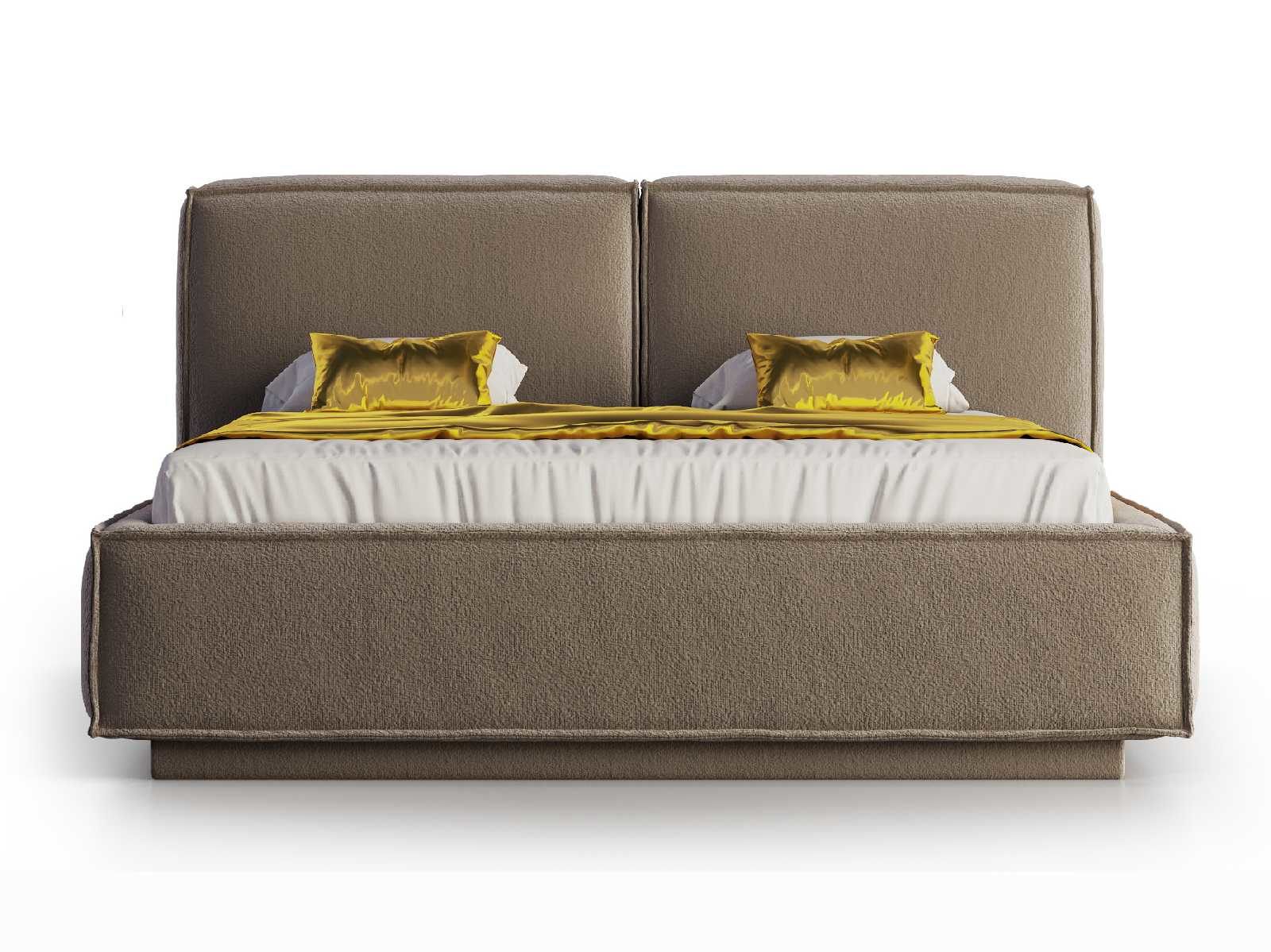 Изголовье выполнено в виде двух объемных прямых подушек, изготовленных по принципу подушек для диванов: умеренно-жесткая основа для поддержки спины во время отдыха и мягкий верхний слой из гипоаллергенного наполнителя с эффектом легкого утопания и свойствами быстрого восстановления первоначальной формы. Усилено 4-мя ножками.