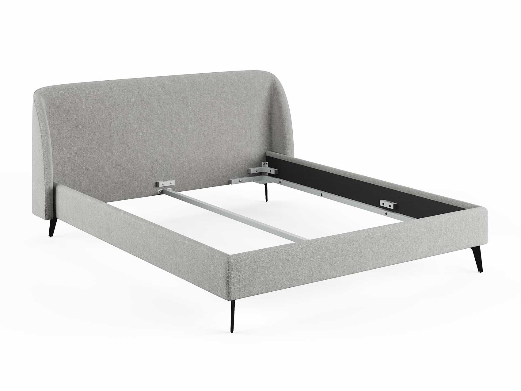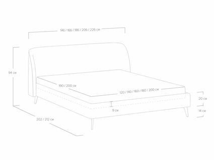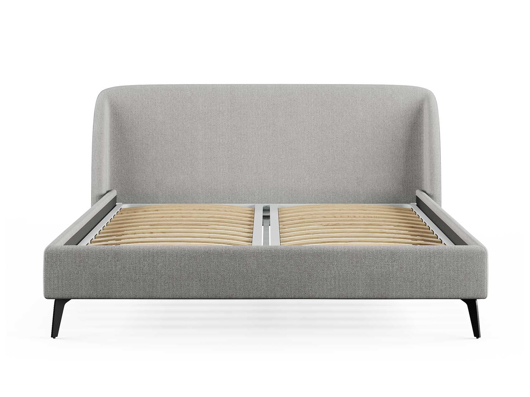 Кровать с закругленным изголовьем делает спальное место особенно уютным. Ее дизайн удачно подойдет для интерьеров в современном стиле, стиле минимализм и стиле mid-century модерн. Спинка кровати выполнена в основной ткани, благодаря этому ее можно установить в центре комнаты. Узкие царги и стильные металлические ножки делают кровать легкой и лаконичной. Кант на изголовье выступает в качестве декора, подчеркивает ее выразительность. Увеличенная прочность кровати достигается за счет металлического каркаса по периметру. Расстояние от пола до царг способствует легкой уборке под кроватью, в том числе роботом – пылесосом.