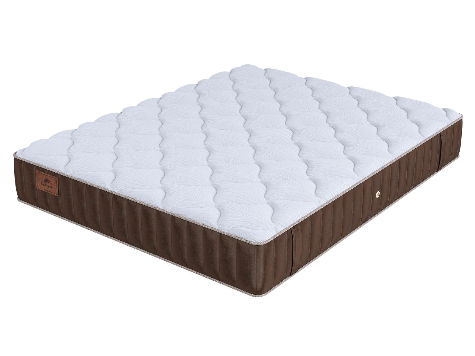 Чехол: Хлопковая трикотажная ткань чехла обеспечивает комфорт и обладает отличной воздухопроницаемостью. Высокообъемная стежка с использованием холлофайбера (600гр.) подарит дополнительный комфорт спальному месту. Изысканный бурлет из мягкого велюра красивого бежевого цвета придает матрасу роскошный внешний вид и подчеркивает его премиальный статус. Каждая модель серии LIFE украшена фирменной кожаной биркой BeautySon, подтверждающая исключительность каждого матраса.