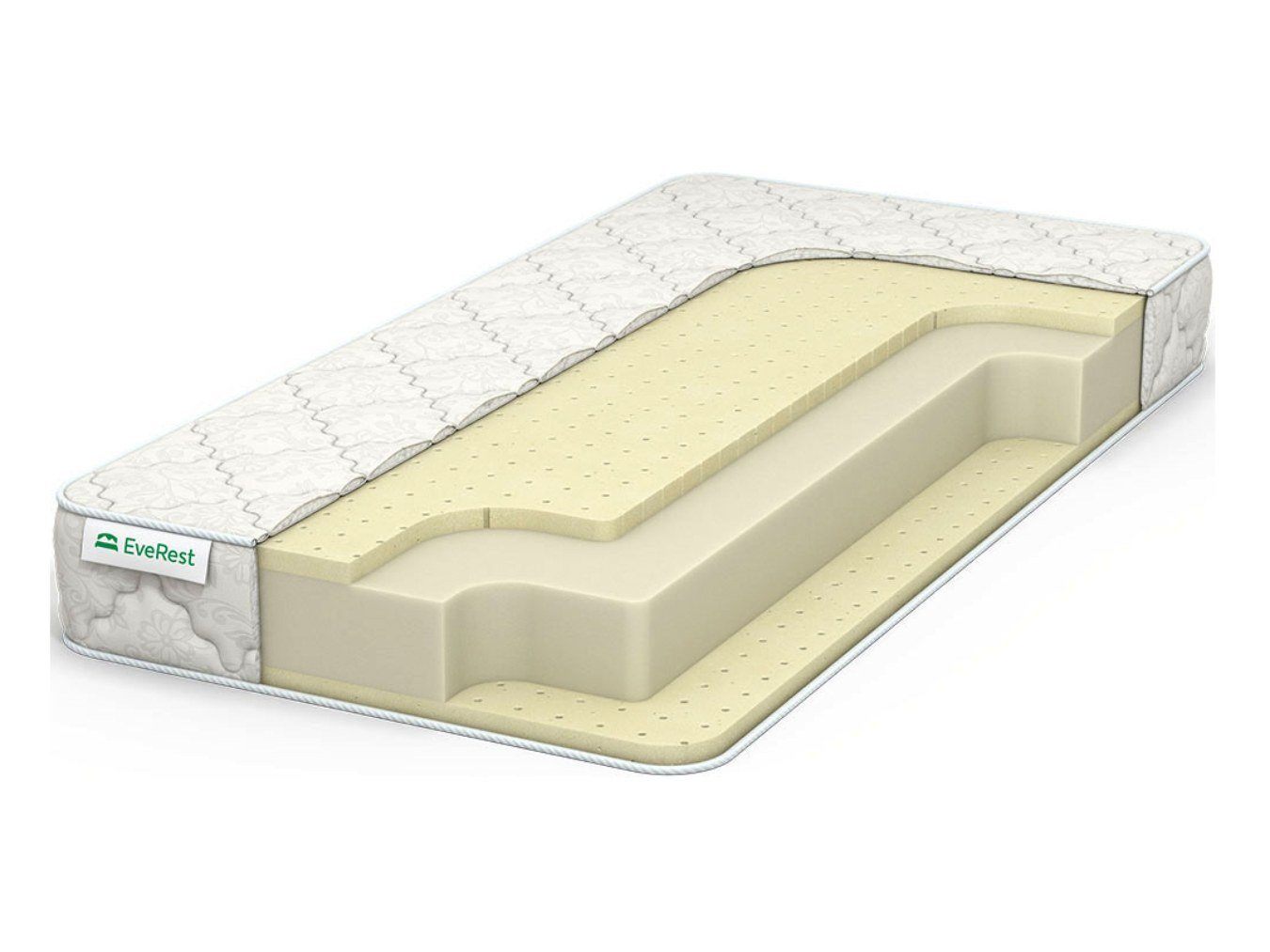 По сторонам от искусственного блока расположились 3 см плиты натурального латекса. Нежный и упругий материал обеспечивает комфорт и отвечает за высокое удобство спального места. По степени пластичности способности к подстройке к анатомии человека, наполнитель практически не имеет себе равнозначных аналогов, за что сильно ценится.