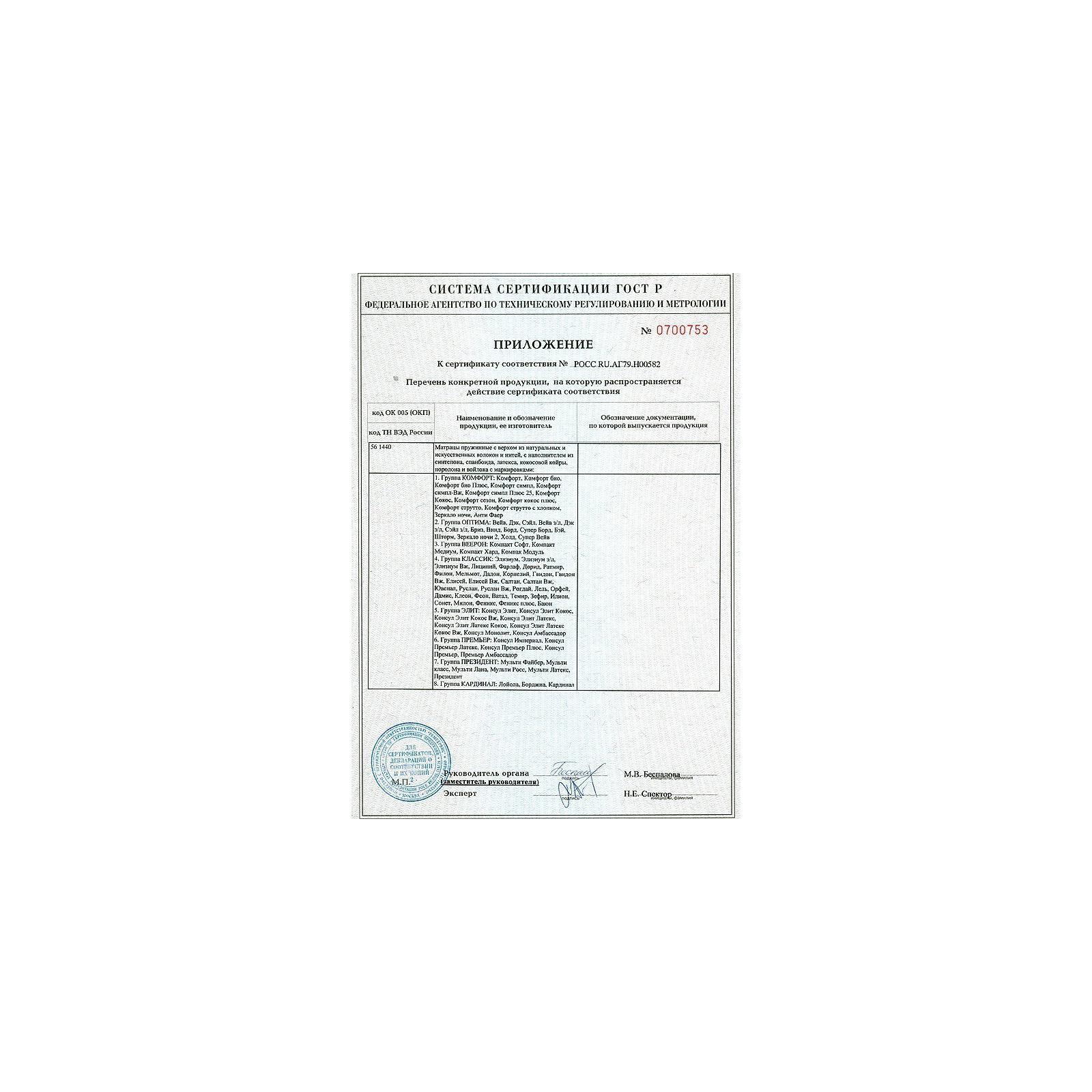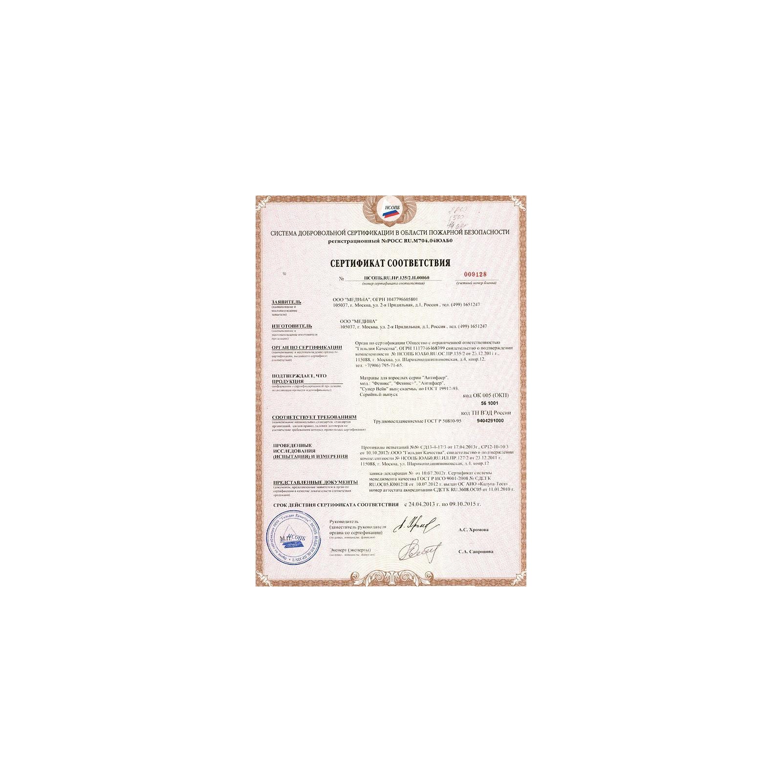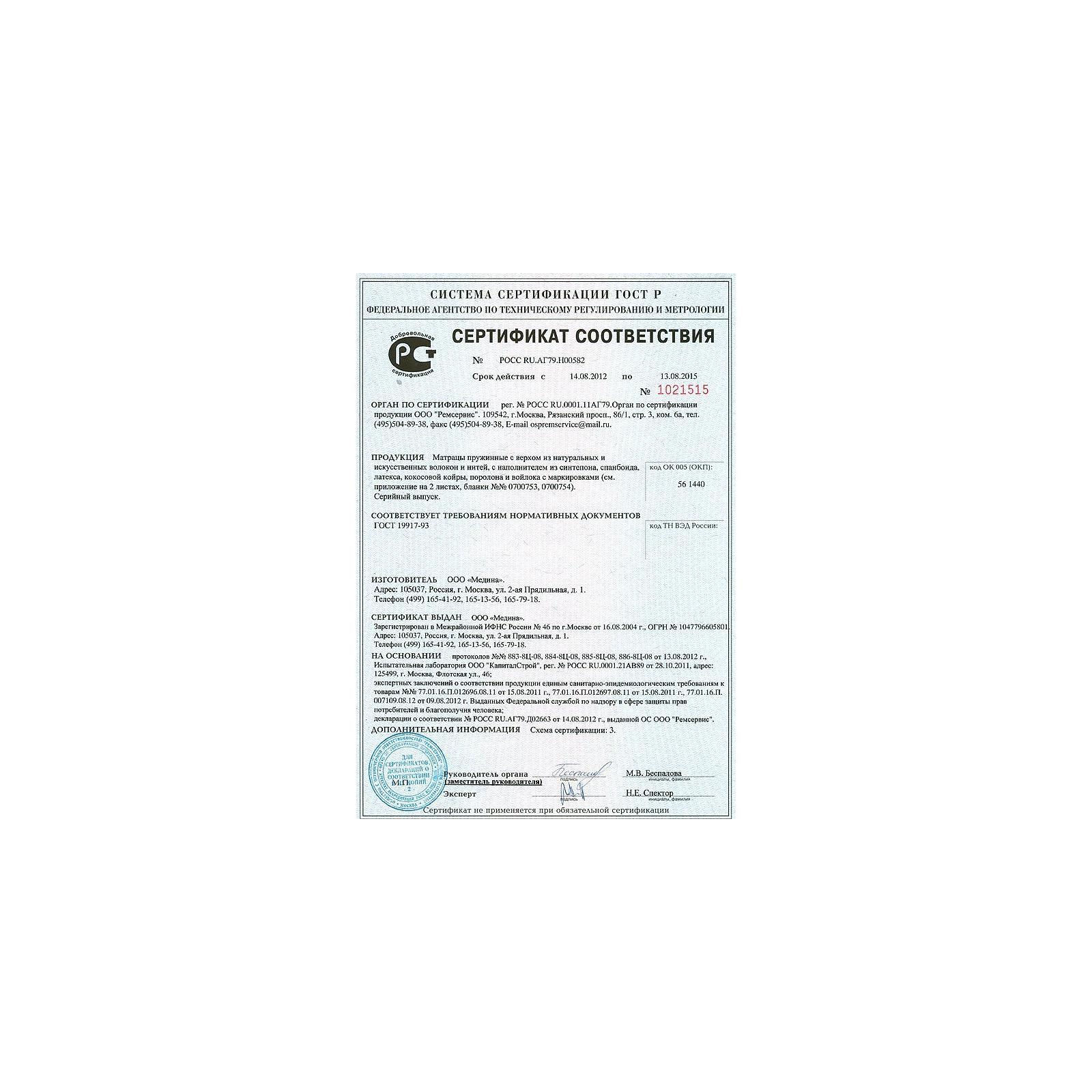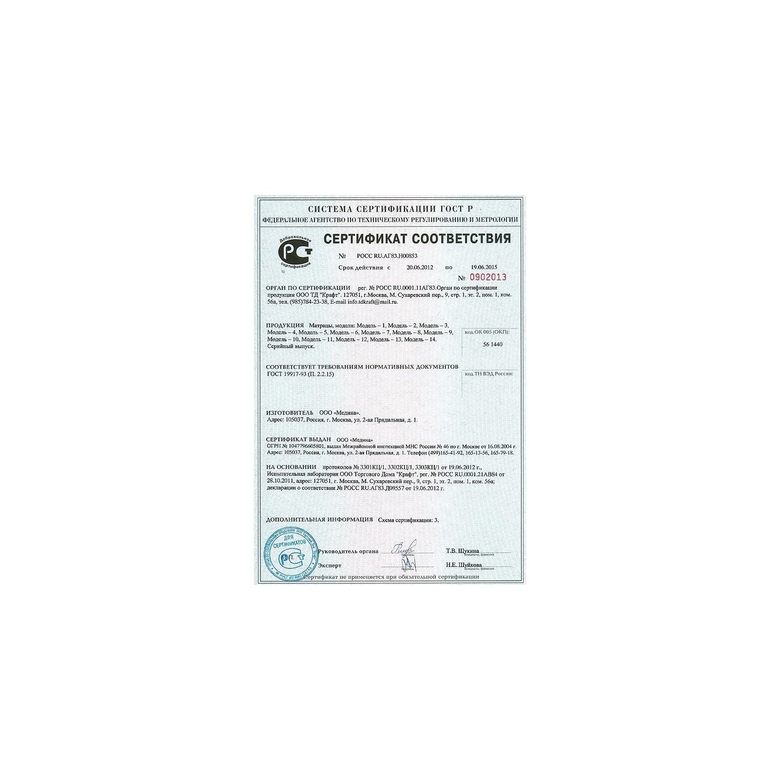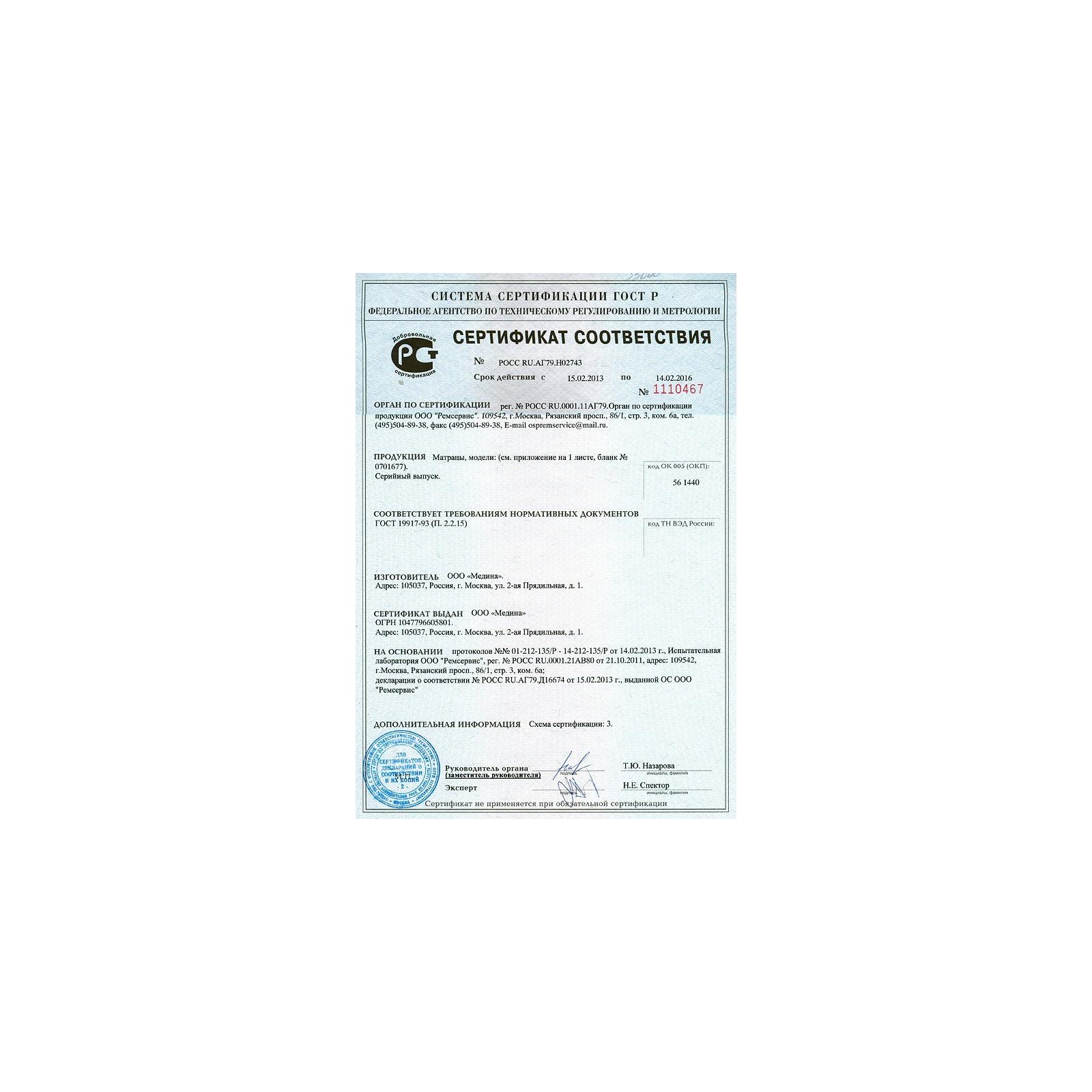 Внутри матраса используется дополнительный чехол безопасности, который продлит эксплуатационный период и защитит настилочные материалы от механического воздействия.