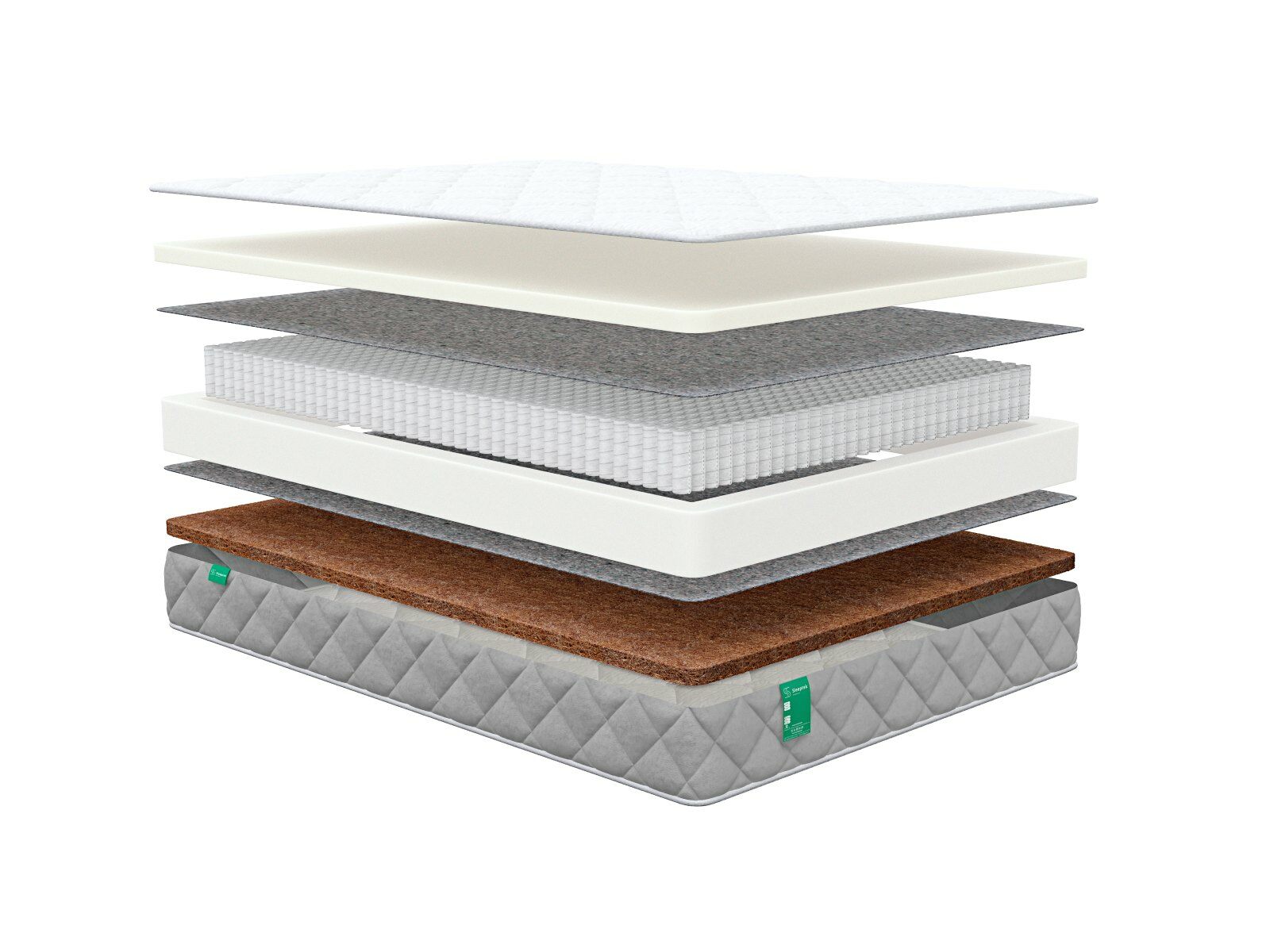 • Натуральный кокосовый слой обеспечивает одной из сторон выраженную жёсткость и даёт спине естественную и правильную поддержку, независимо от привычной позы сна.