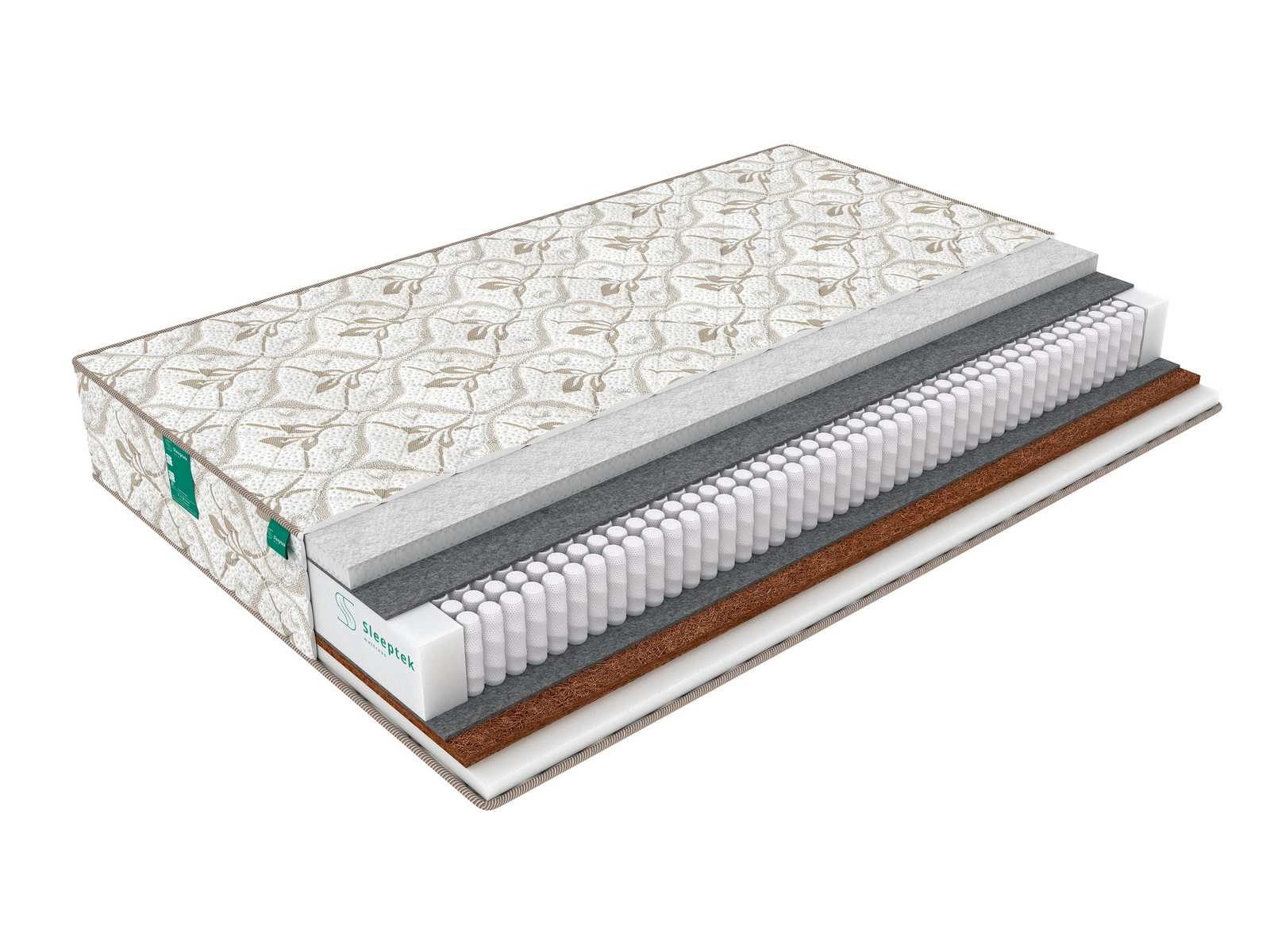 Койра кокоса усиливает ортопедические качества матраса, а пена и струттофайбер смягчают спальную поверхность и придают ей упругость. Все три наполнителя являются безопасными, гипоаллергенными и гигиеничными. Они не накапливают пыль и влагу, эффективно отводят посторонние запахи, в них не развивается плесень и не заводятся болезнетворные микроорганизмы.