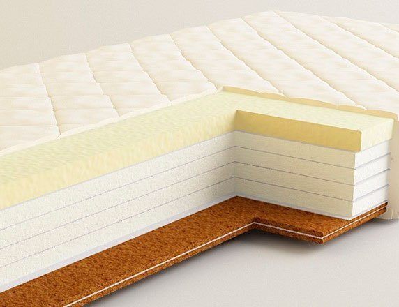 Ортопедический матрас без использования пружинного блока. Вместо него присутствует пенополиуретан 12 см. С одной стороны матраса наполнитель мимори микс, материал с эффектом памяти. Мемори микс способен запоминать приложенное к нему усилие, сохраняя контуры вашего тела во время сна. Мемори микс передовая высокотехнологичная разработка, матрасы на его основе обретают все большую популярность. С другой стороны матраса 2 см кокосового волокна, эта сторона более жесткая и упругая.