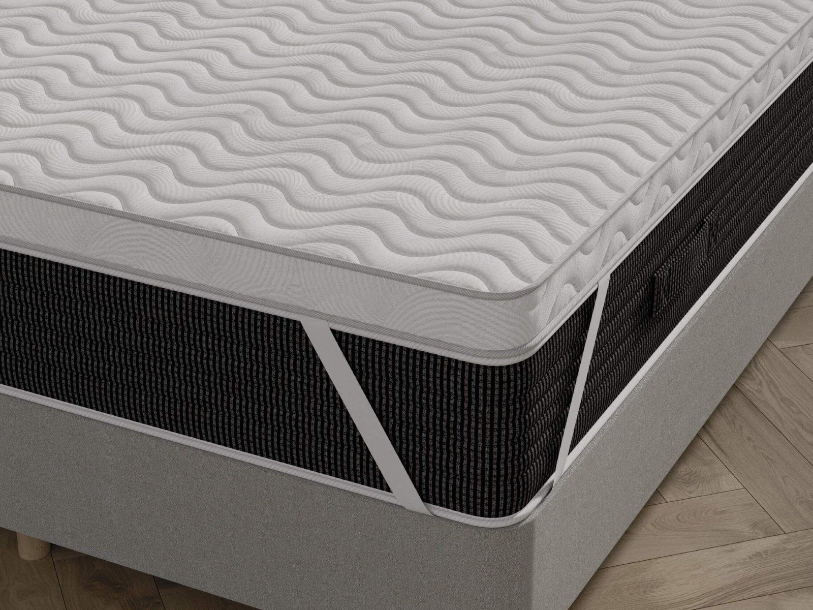Топпер из современных материалов, может использоваться как дополнение к любому спальному месту. Комбинация материалов обеспечивает упругость и максимальный комфорт во время сна. Оптимально подобранные слои из современных пен разной плотности, жесткости, с разными свойствами, для здорового и комфортного сна. Подходит для аллергиков. Крепление осуществляется с помощью резинок по четырём углам.