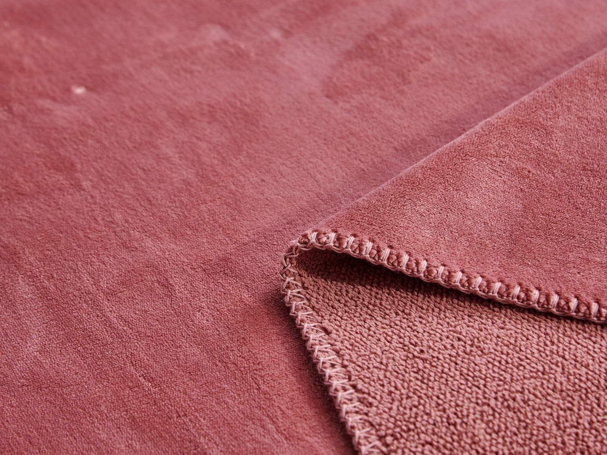Изделие выполнено из 100% вискозы, такой материал хорошо впитывает влагу, сохраняет тепло и дарит чувство комфорта. Края изделия обработаны декоративной стежкой.