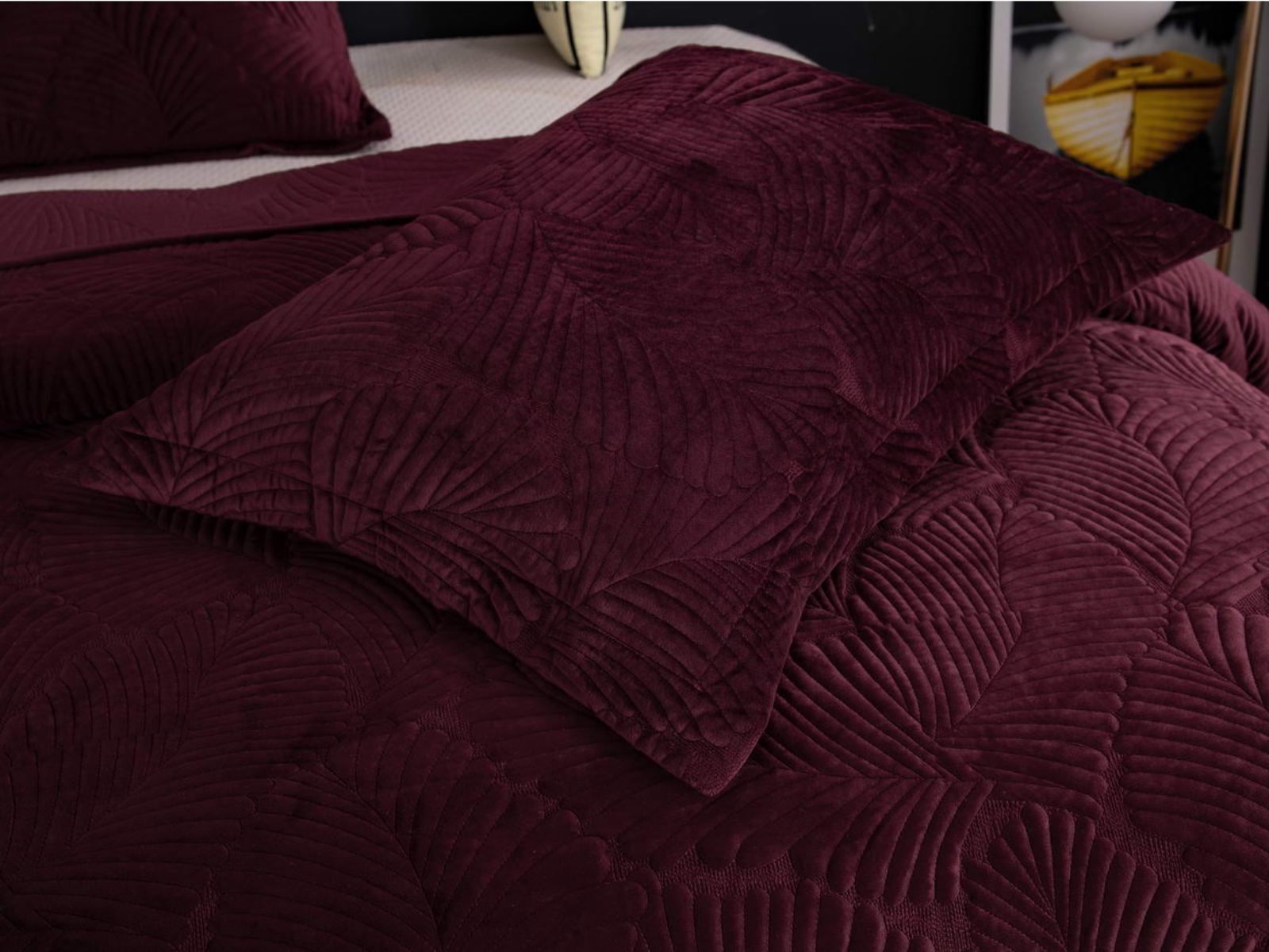 На создание велюрового покрывала Ноэль наших дизайнеров вдохновила ночь в середине лета, когда на раскаленную от жары землю спускается долгожданная прохлада. Роскошная вышивка в виде пальмовых листьев будет напоминать о тени, которую отбрасывают деревья.