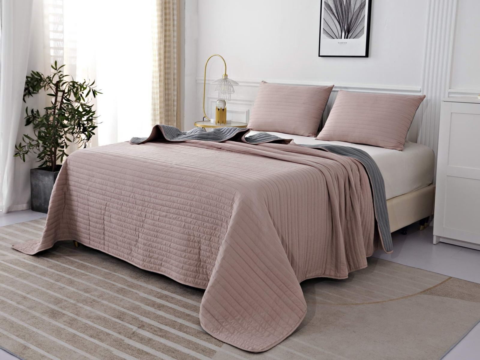 Двусторонние стеганные покрывала Самуэль выполнены из вискозы и хлопка, они легкие и прочные. В комплект входят покрывало и одна либо две наволочки (50х70 см) из аналогичного материала в зависимости от размера, вы можете использовать покрывало по назначению, либо в качестве постельного белья. В любом случае, вы будете в восторге от этого комплекта!