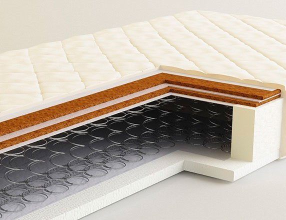 Несимметричный матрас с немного разными по жесткости сторонами. С одной стороны у матраса Мистер Слип натуральное кокосовое волокно с латексной пропиткой 2 см, эта сторона максимально жесткая. С другой стороны искусственный, но все же немного белее мягкий аналог кокосового волокна, материал струтто микс. Основа матраса классический пружинный блок "bonnel". Максимальный рекомендуемый вес человека 120 кг на одно спальное место.